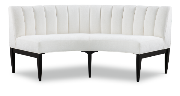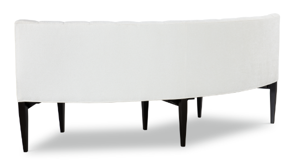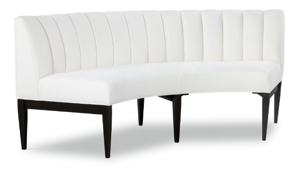 Description: Curved banquette with tight seat and channeled back. Wood legs.